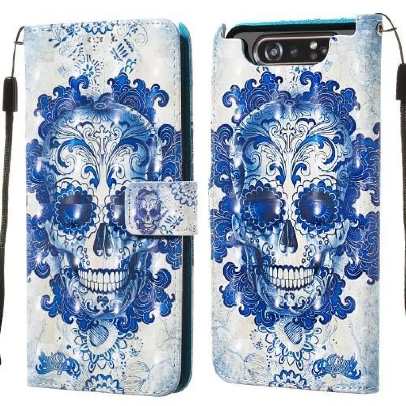 3D festés PU bőr tok Samsung Galaxy A80-hoz - kék koponya