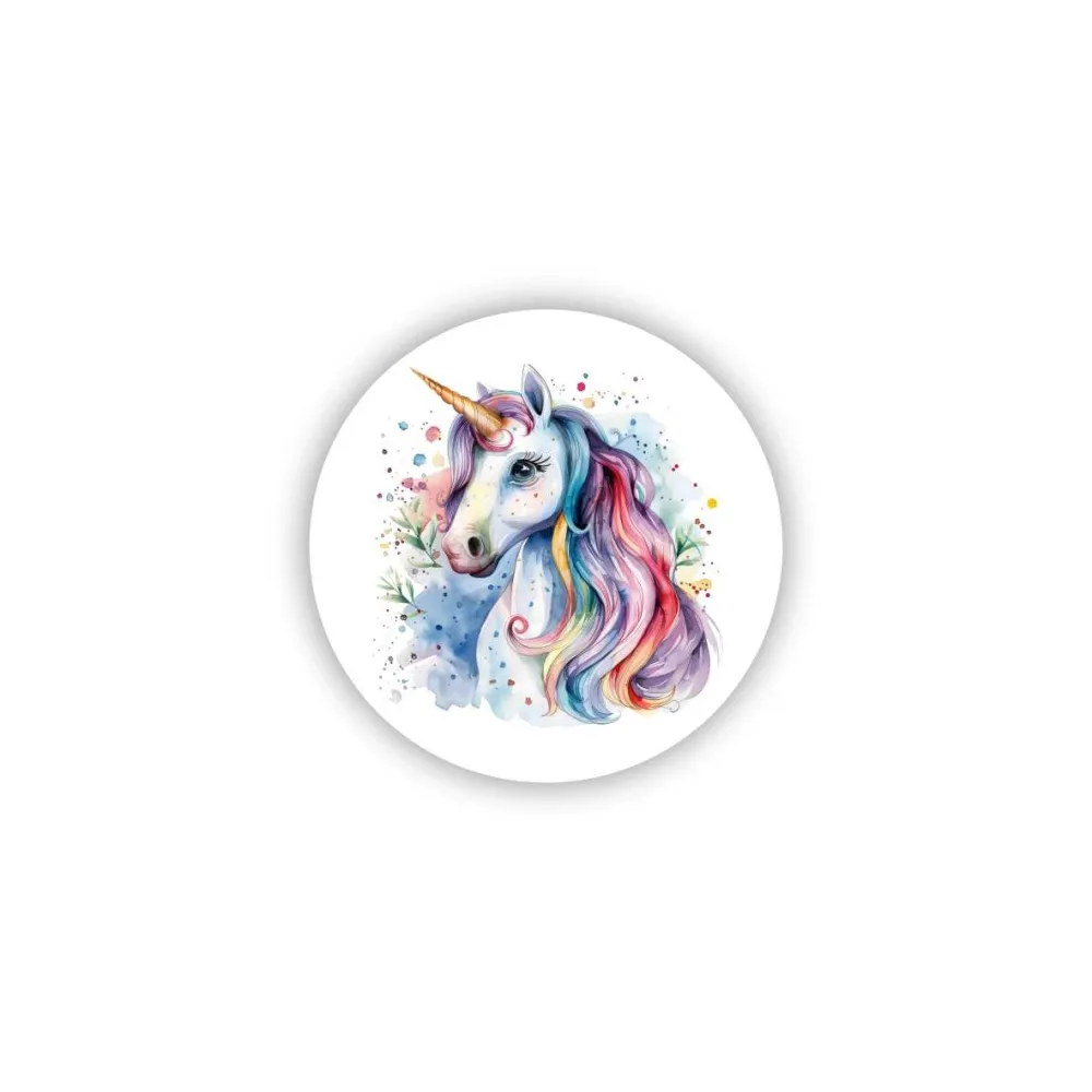 60x60 mm-es kerek mágnes akvarell unikornis motívummal