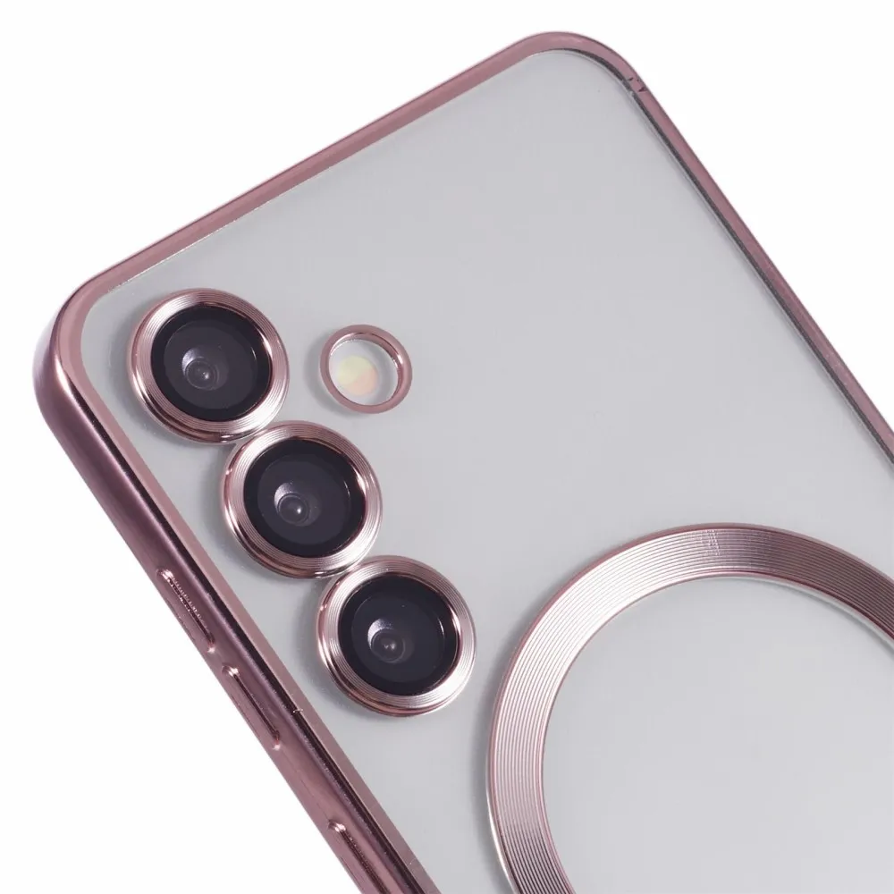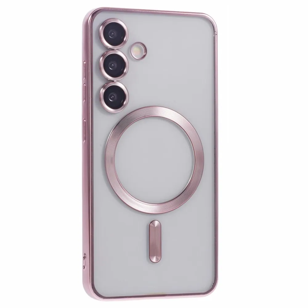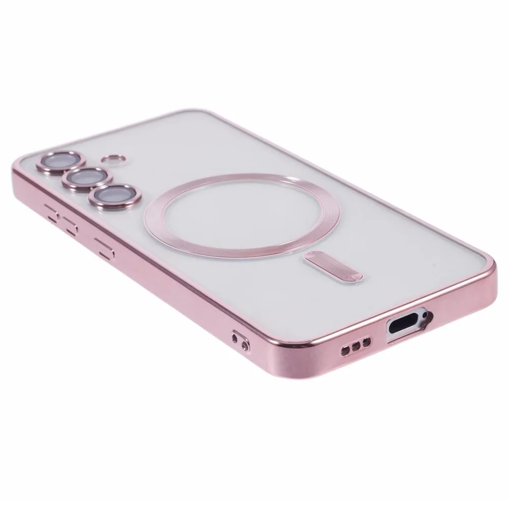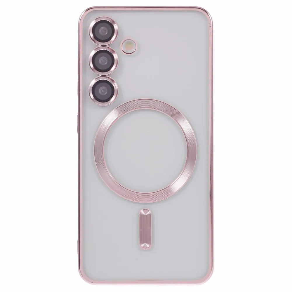 Rózsaszín átlátszó borítás kameravédelemmel és MagSafe támogatással Samsung Galaxy S25+ készülékhez