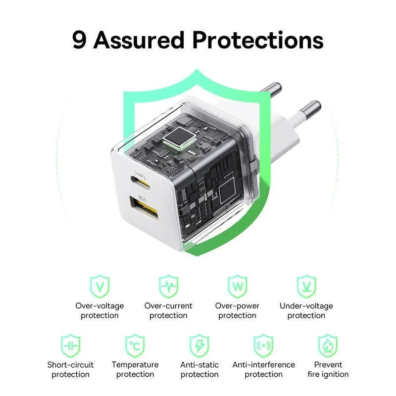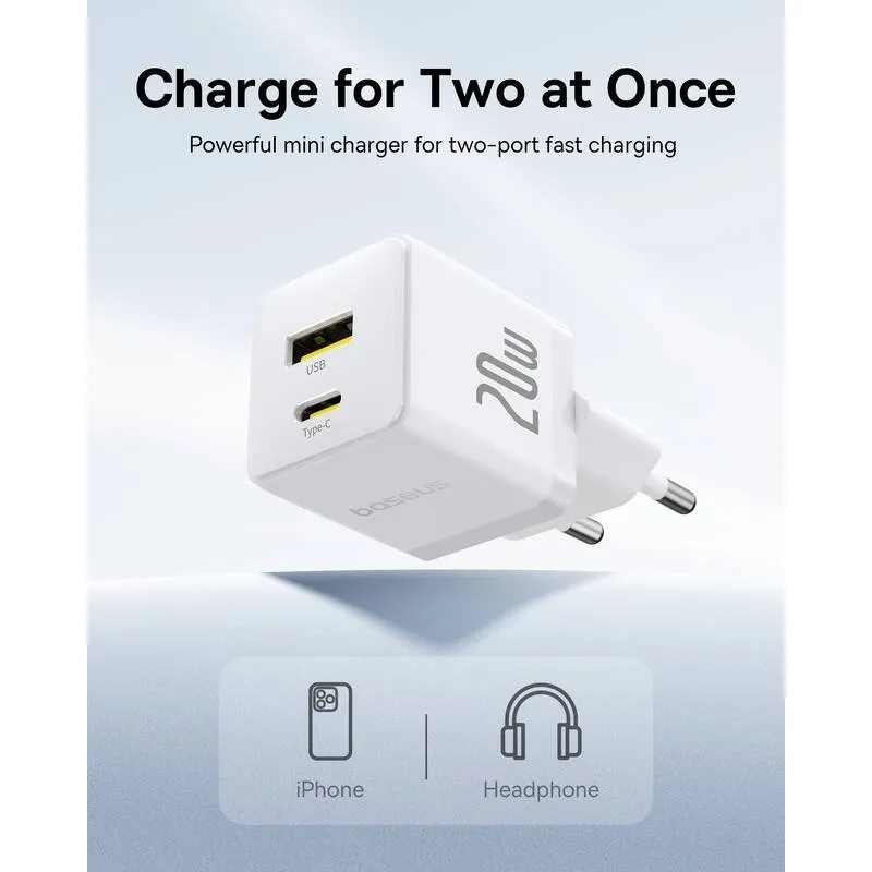 Baseus Palm Gyorstöltő USB-A + USB-C 20W Fehér