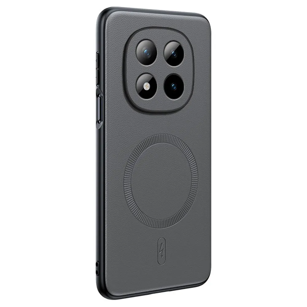 Szürke zselés borítás műbőrrel és MagSafe bevonattal a Xiaomi Redmi Note 15 Pro+ 5G-hez