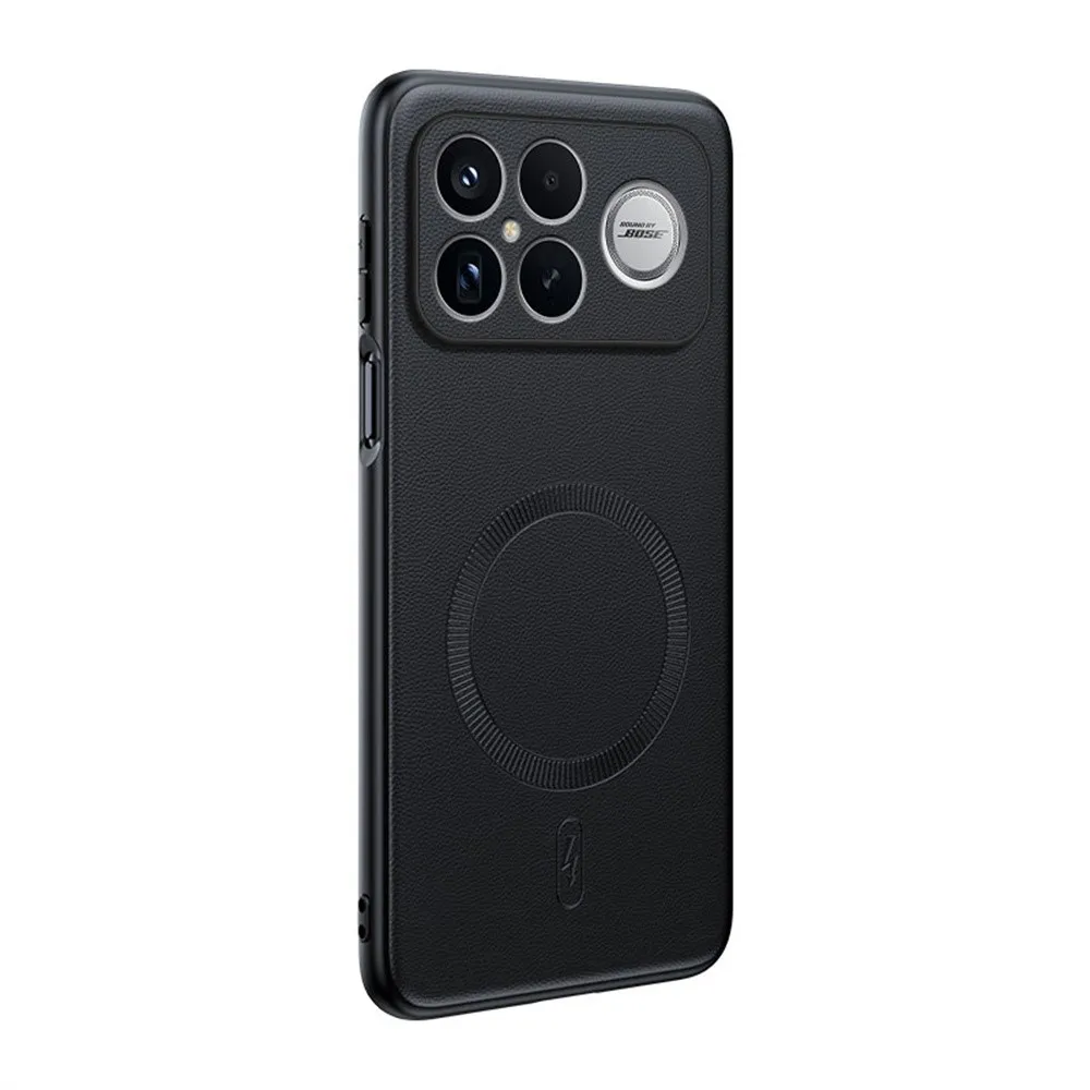 Fekete bevonatú zselés borítás műbőrrel és MagSafe a Xiaomi Poco F8 Ultra 5G-hez