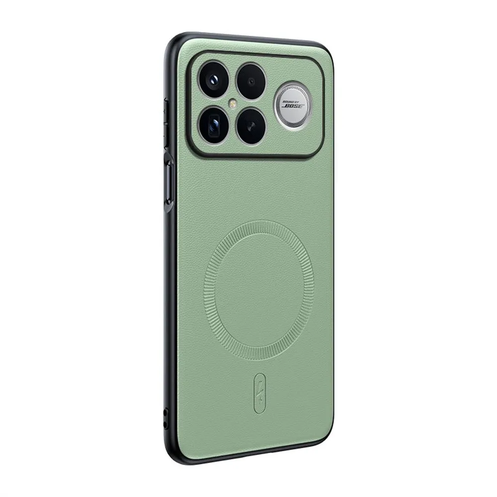 Zöld bevonatú zselés borítás műbőrrel és MagSafe a Xiaomi Poco F8 Ultra 5G számára