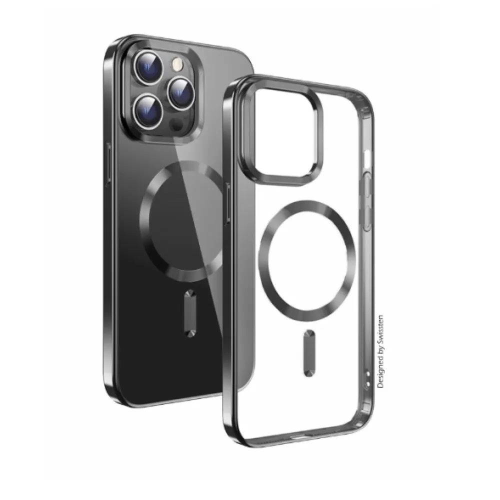 Fekete SWISSTEN Clear Jelly MagStick Metallic borító Apple iPhone 13 készülékhez