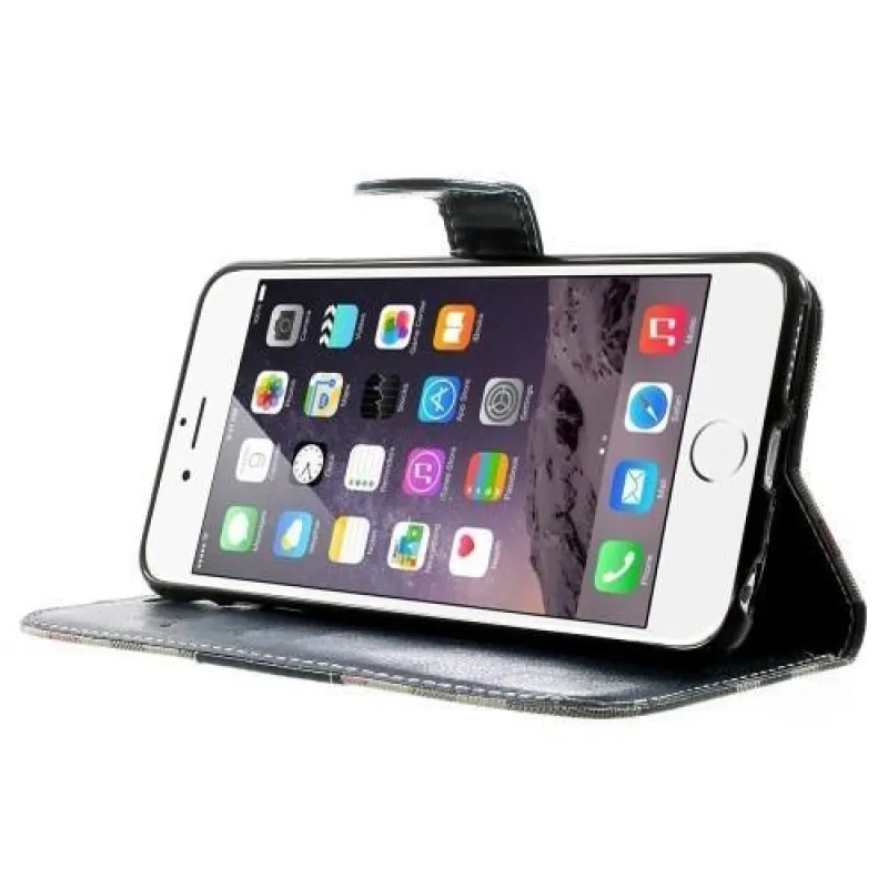 Check PU bőr könyvtáska iPhone 6s Plus és 6 Plus készülékhez - sötétkék színben