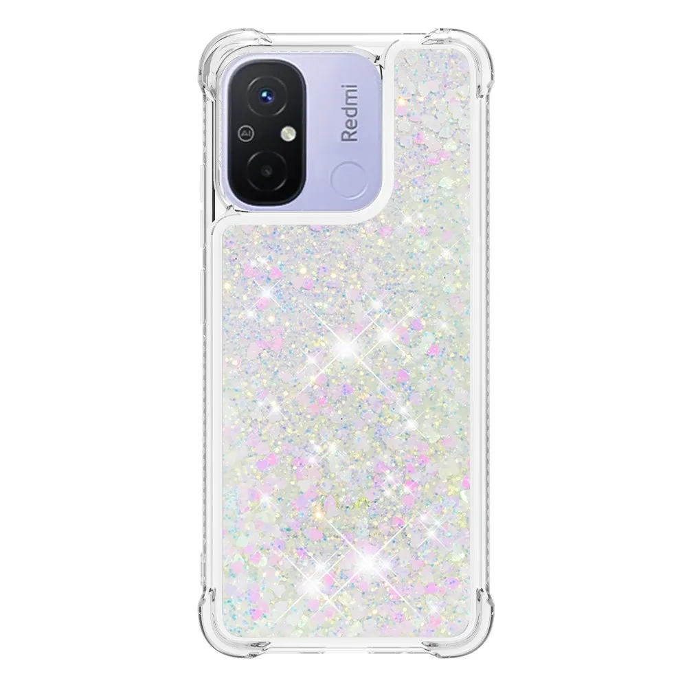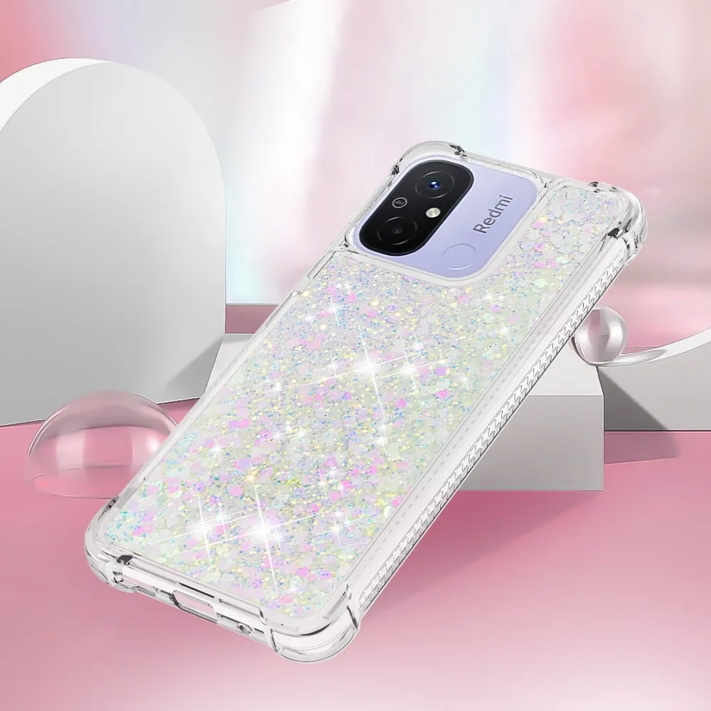 Homokóra zselés borítás Glitter a Xiaomi Redmi 12C-n - rózsaszín és ezüst szívecskékkel