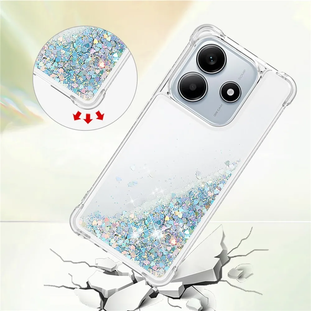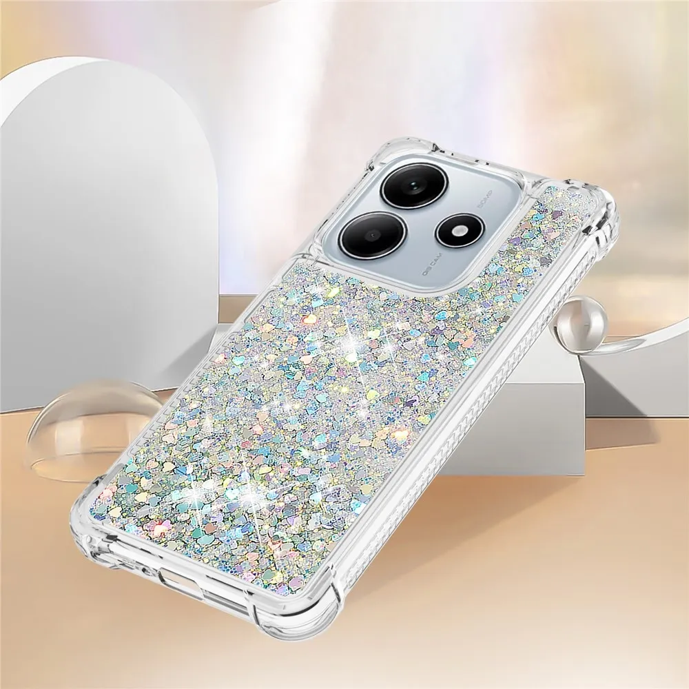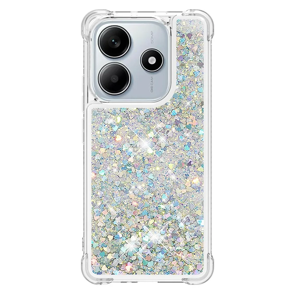 Csillogó ezüst szilikon tok szívekkel Xiaomi Redmi Note 14 5G-hez
