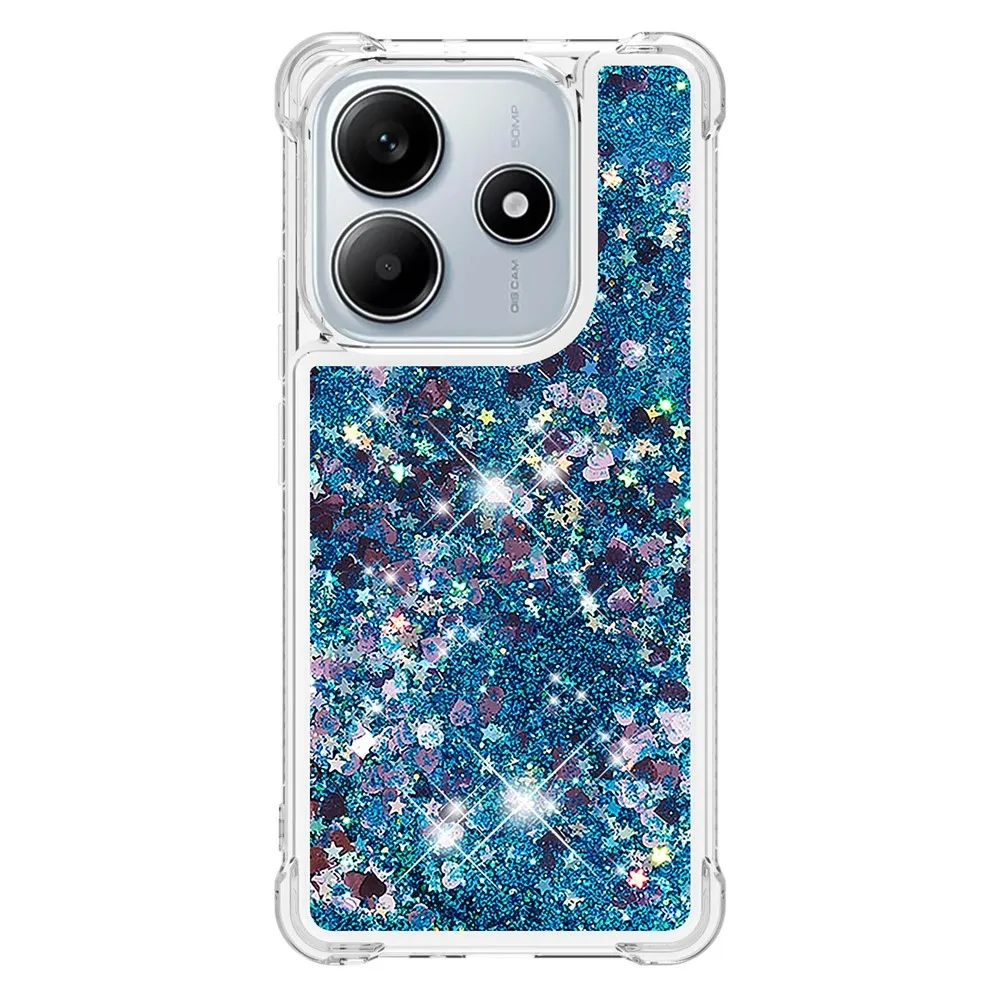 Csillogó homokóra zselés tok Xiaomi Redmi Note 14 5G - kék/szív