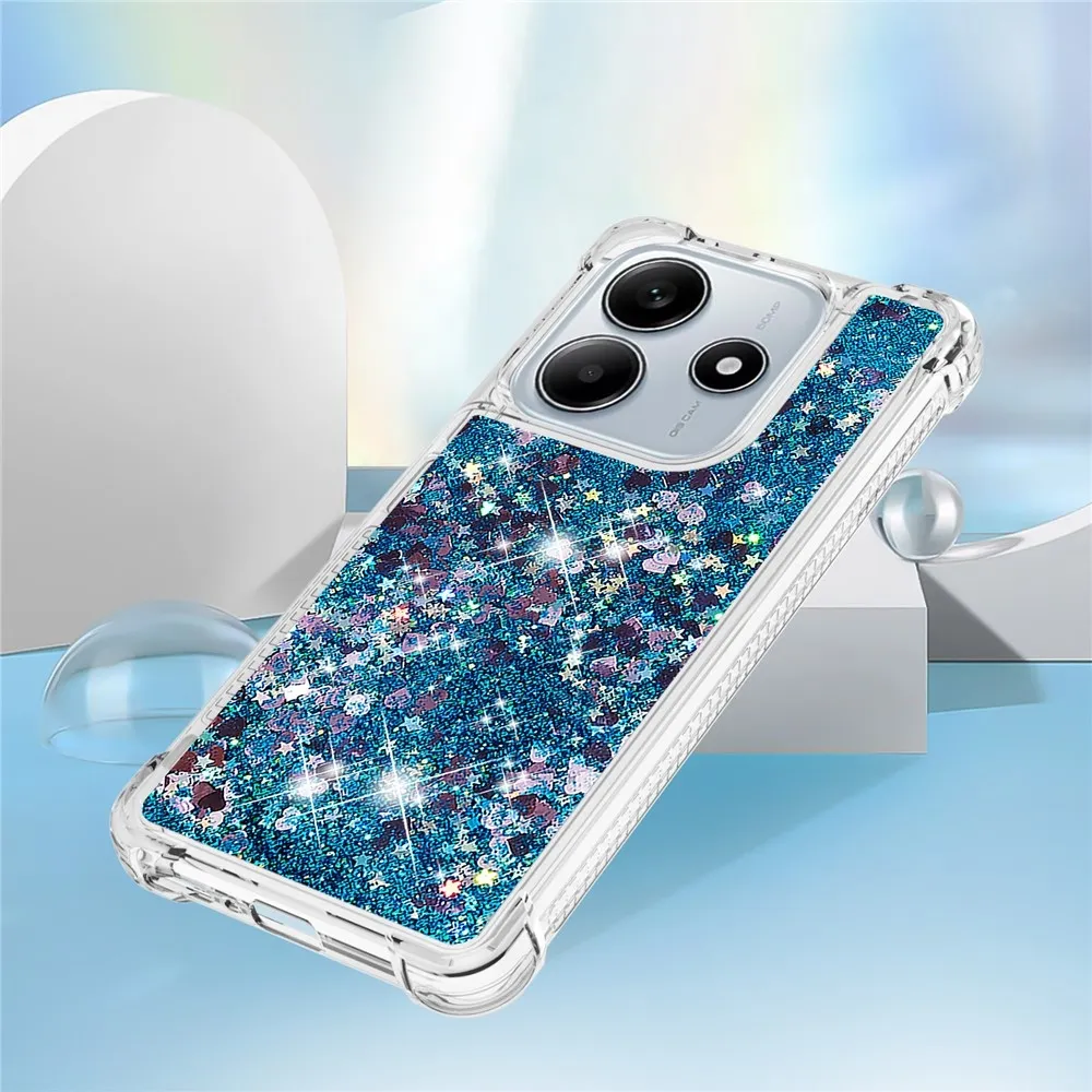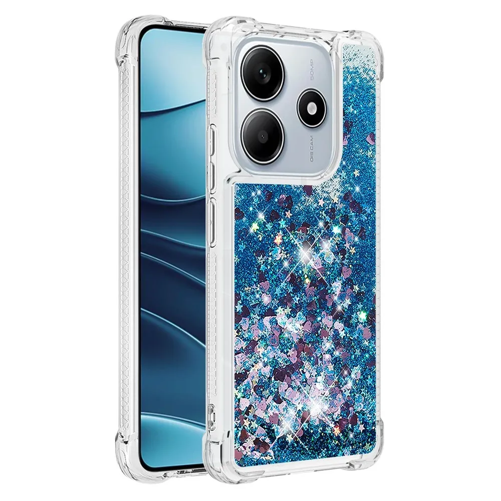 Csillogó kék szilikon tok szívekkel Xiaomi Redmi Note 14 5G-hez