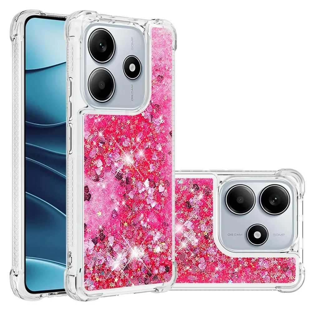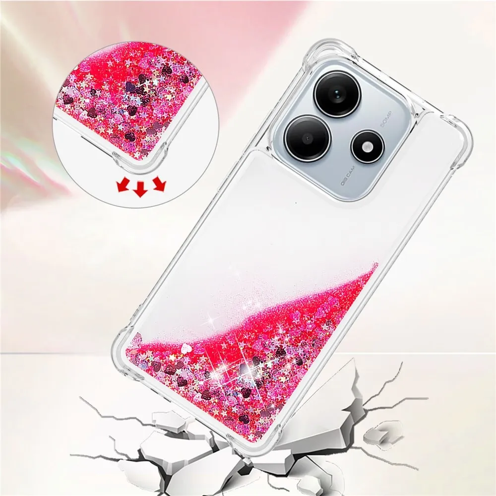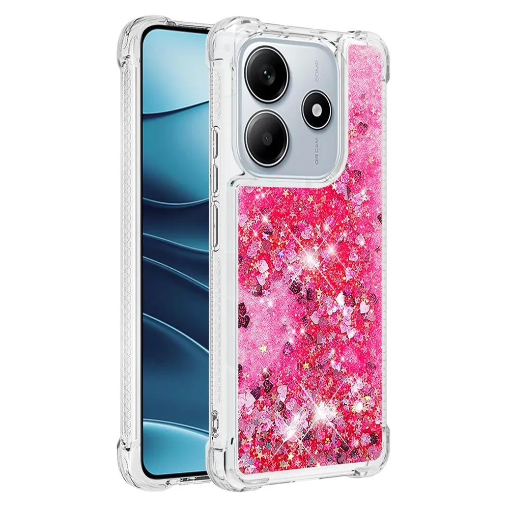 Rózsaszín csillogó szilikon tok szívekkel Xiaomi Redmi Note 14 5G-hez