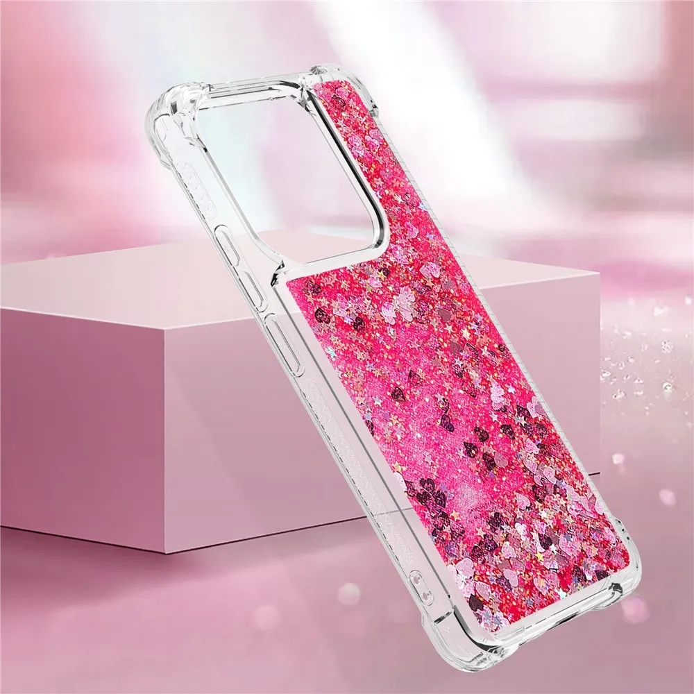 Csillogó homokóra zselés tok Xiaomi Redmi Note 14 5G - rózsaszín/szív