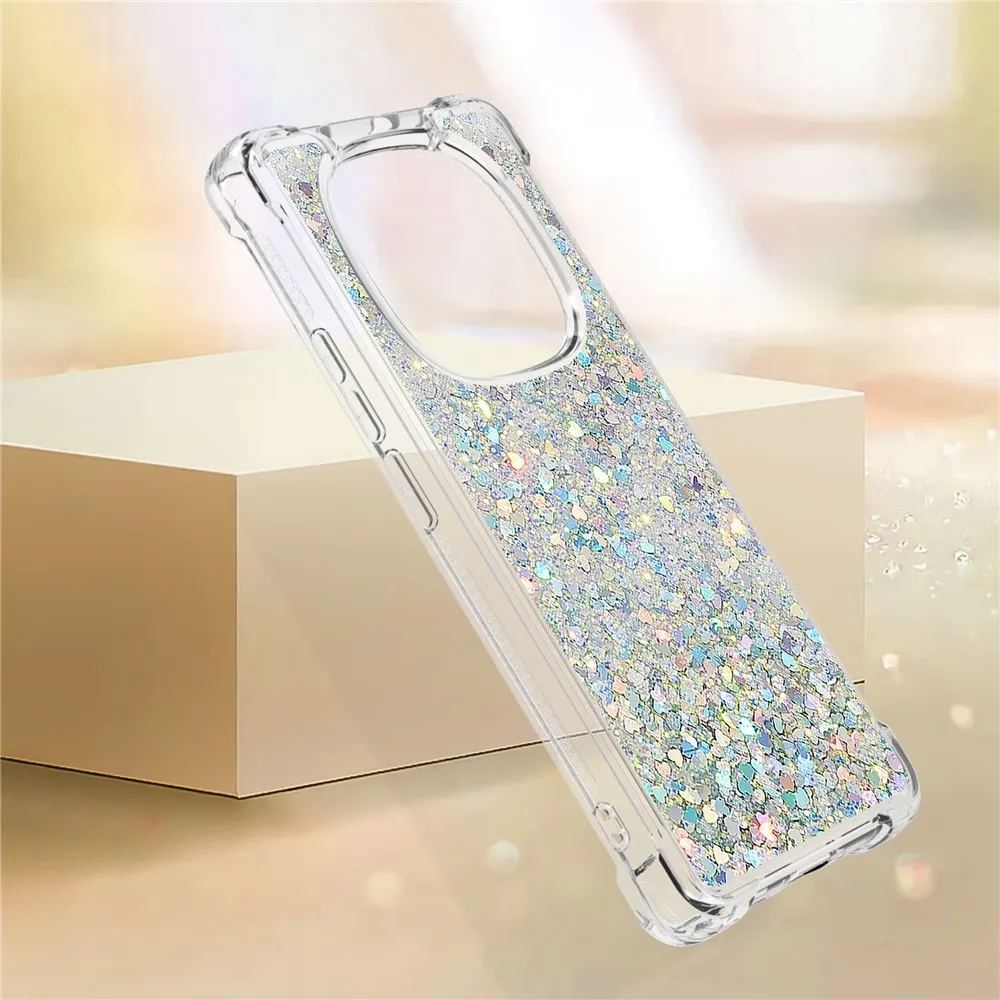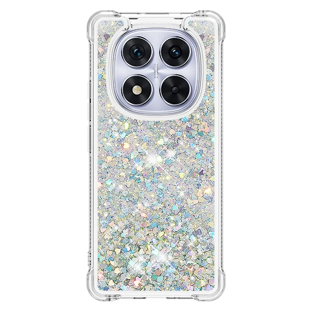 Csillogó ezüst szilikon tok szívekkel Xiaomi Redmi Note 14 Pro 5G/Poco X7 5G számára