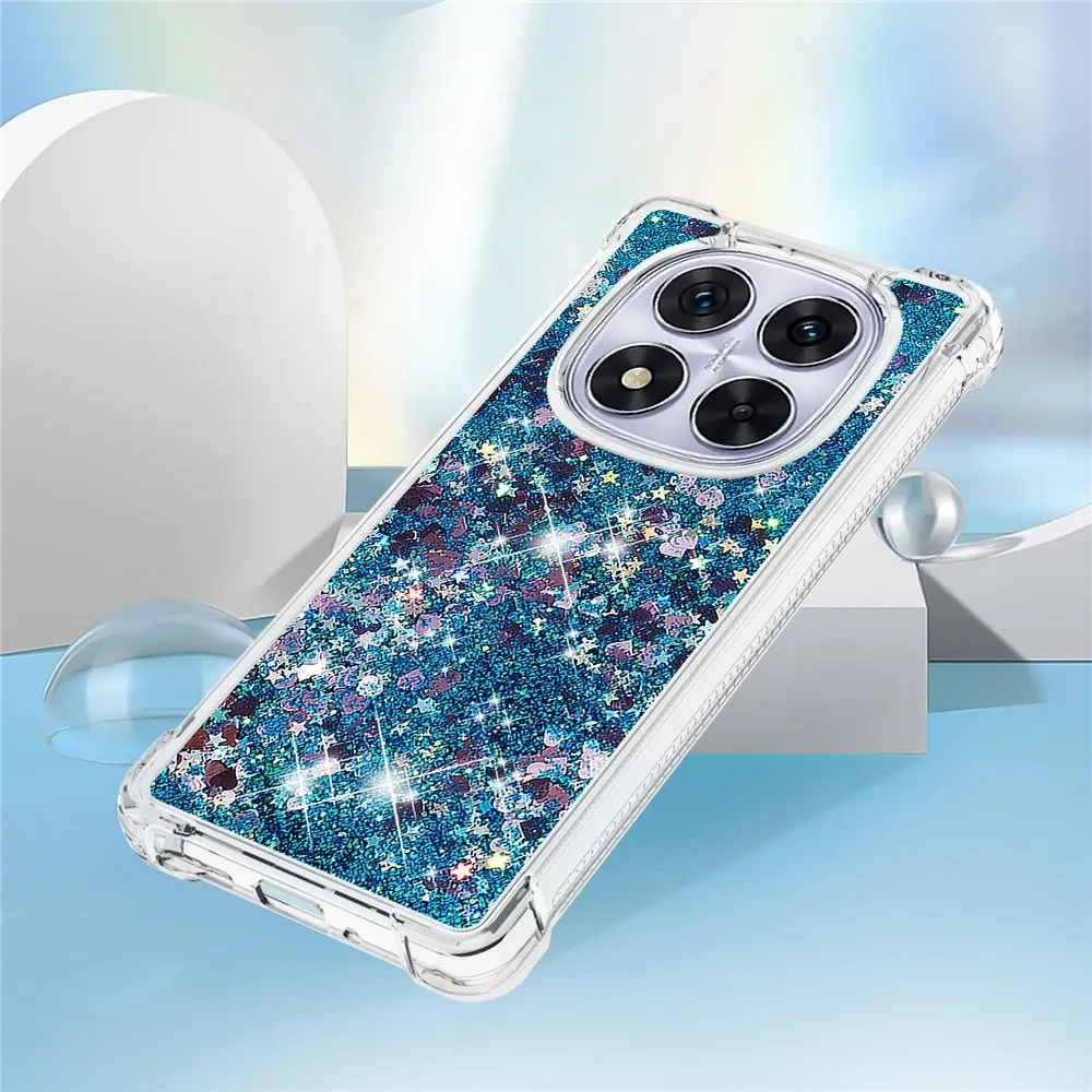 Csillogó homokóra zselés tok Xiaomi Redmi Note 14 Pro 5G/Poco X7 5G - kék/szív