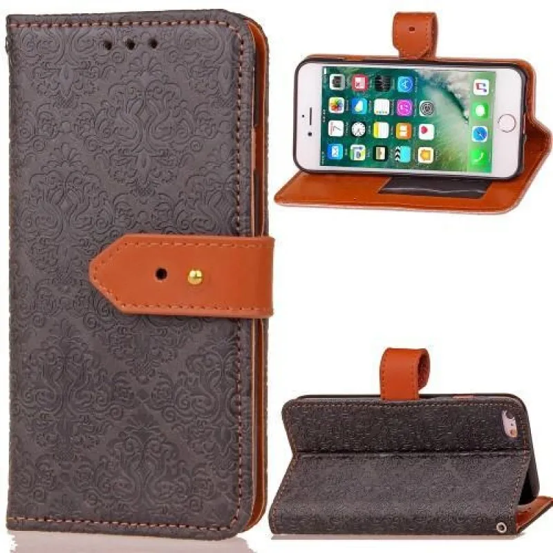 Damaszk PU bőr tok iPhone 6 Plus és iPhone 6s Plus készülékhez - fekete