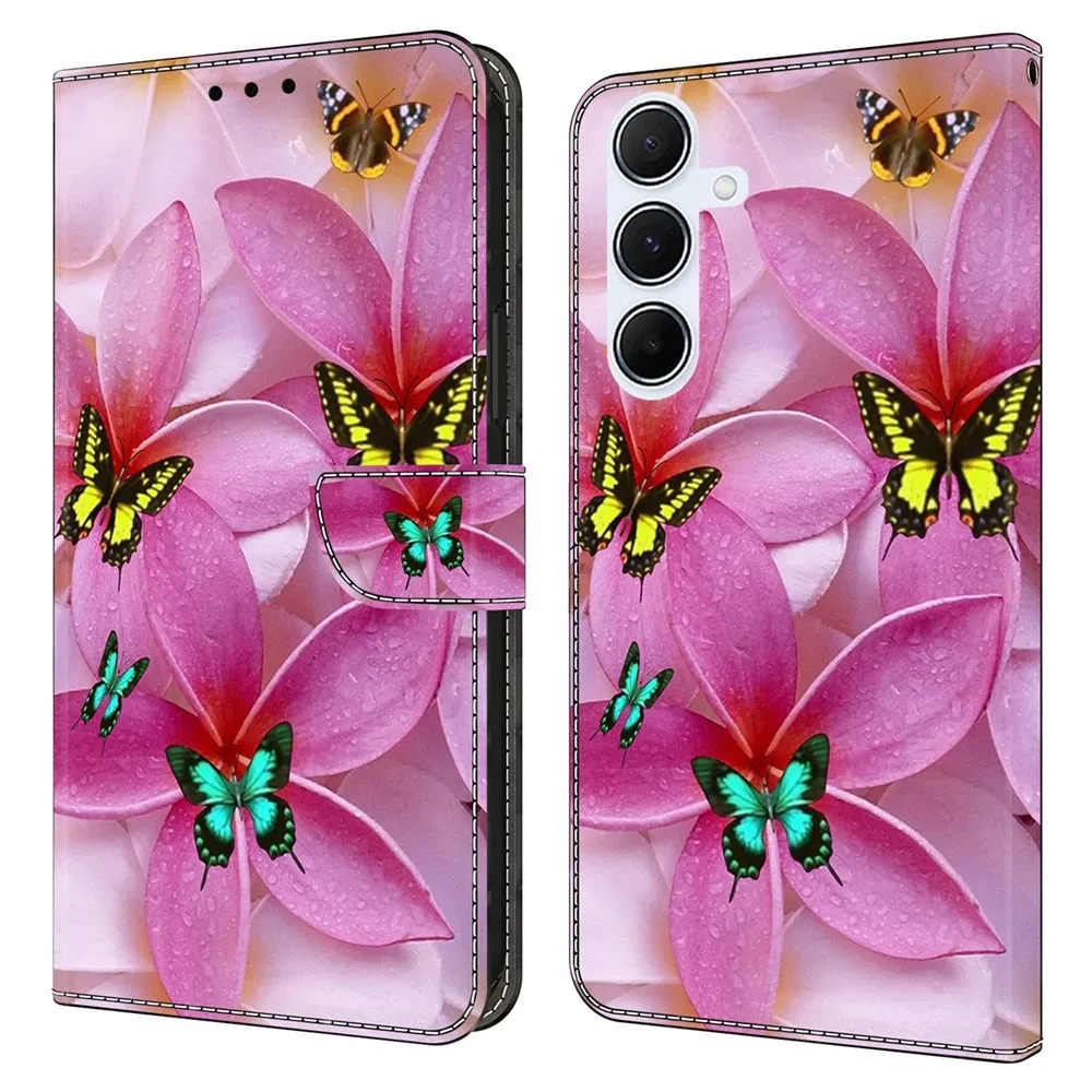 Tárca tok Fashion motívummal pillangók és rózsaszín virágok a mobiltelefonon Samsung Galaxy A26 5G