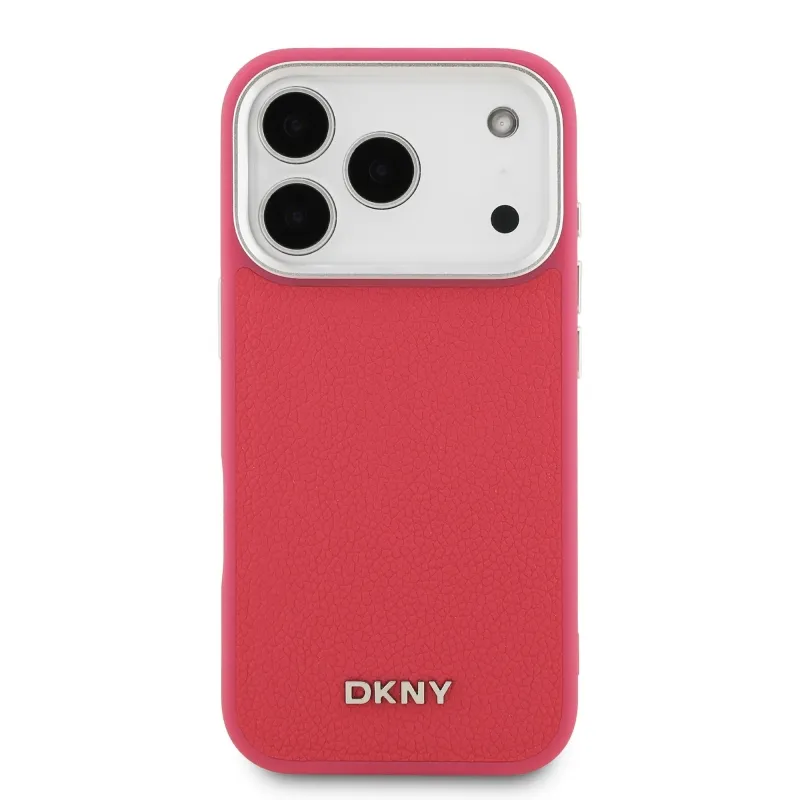 DKNY PU bőr fém logós csuklólánc MagSafe hátlap iPhone 17 Pro rózsaszínhez