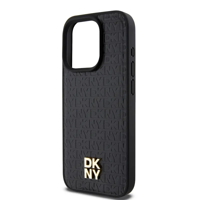 DKNY PU bőr Ismétlődő mintás Stack Logo Magsafe hátlap iPhone 14 Pro Fekete