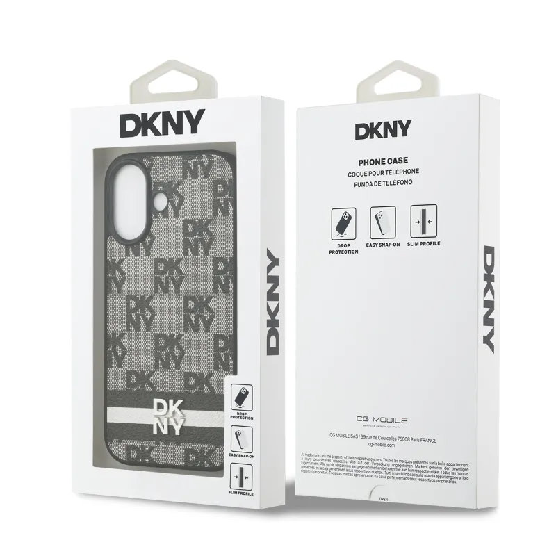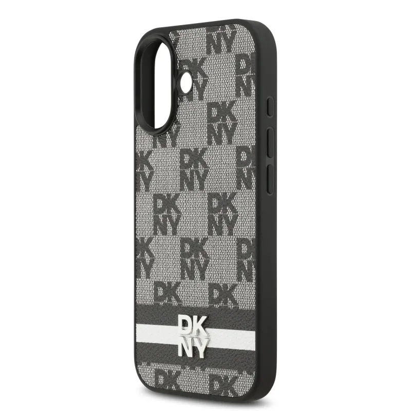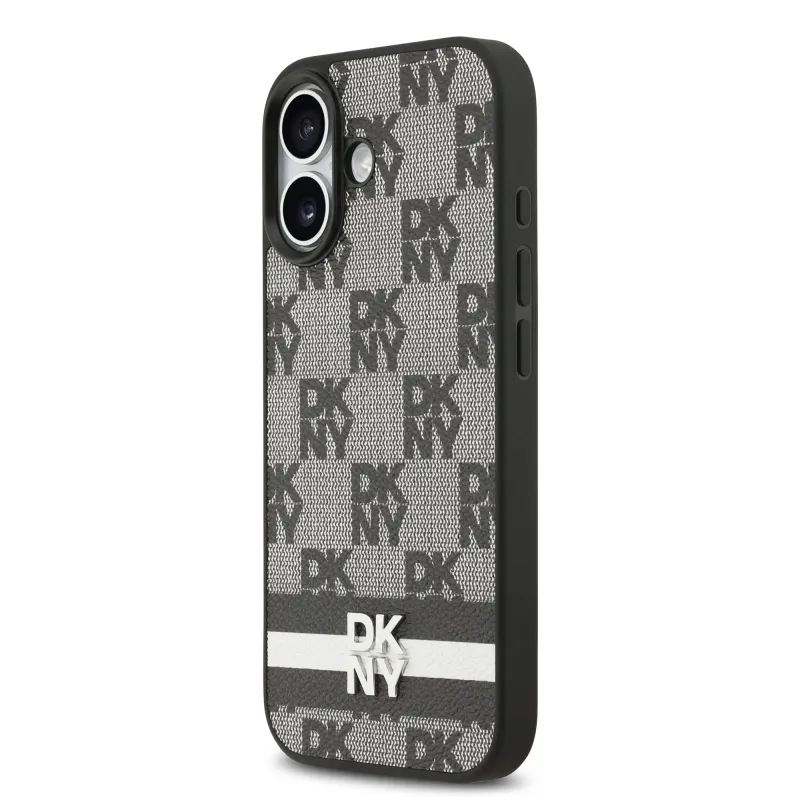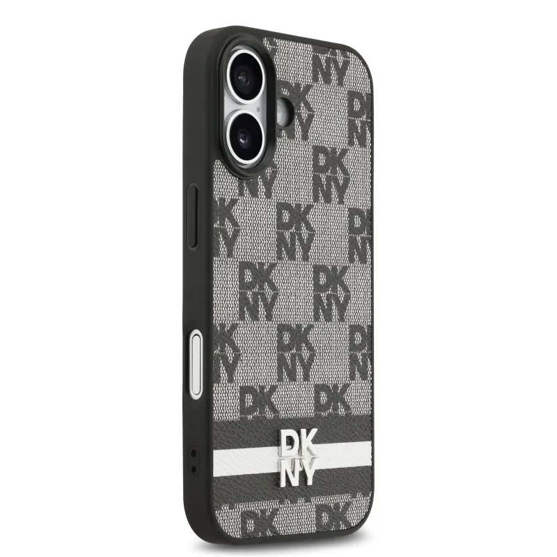 DKNY PU bőr kockás mintás és csíkos hátlapi borító iPhone 17 Fekete