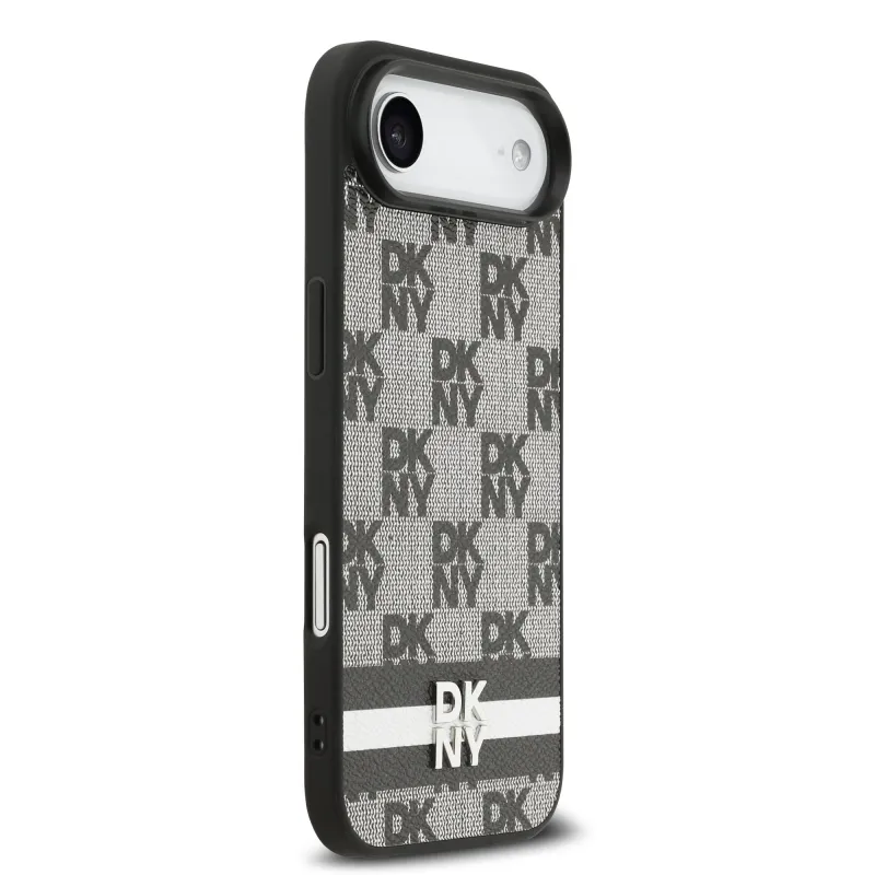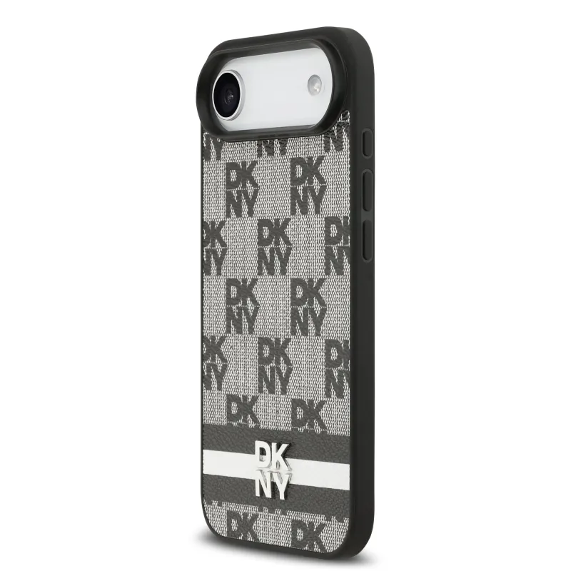 DKNY PU bőr kockás mintás és csíkos hátlapi borító iPhone Air fekete színűhöz