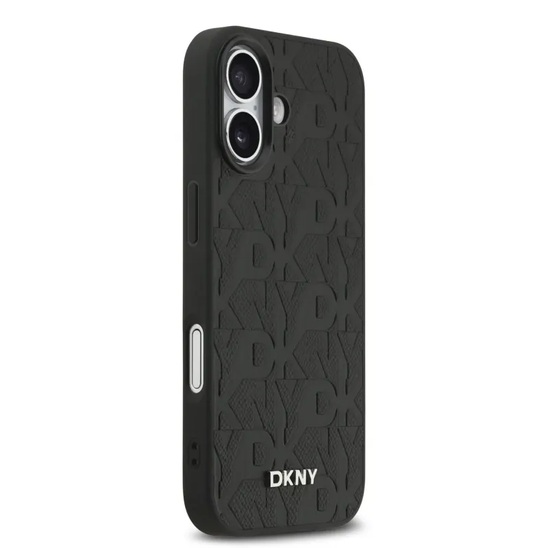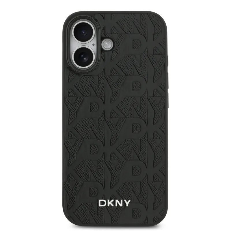 DKNY PU bőr rácsos mintás Magsafe hátlap iPhone 17 fekete