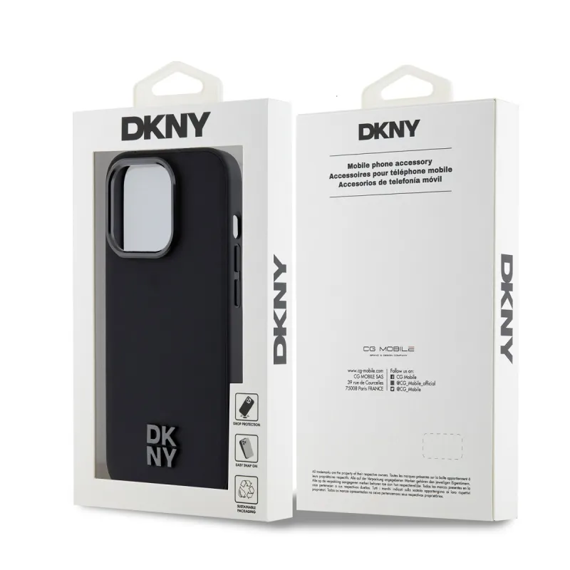 DKNY PU bőr Stack Logo Magsafe hátlap iPhone 14 Pro Fekete