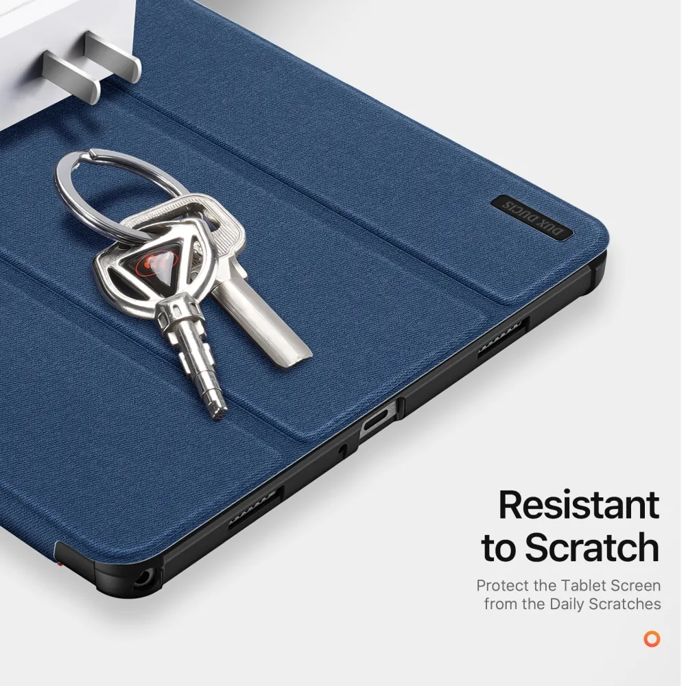 A praktikus és elegáns, zárható DUX tok Samsung Galaxy Tab A11+/Tab A9+ tablethez kék kivitelben ideális megoldás az eszköz védelmére és kényelmes használatára. A tok tartós anyagból készült, amely hatékony védelmet nyújt karcolások, ütődések és mindennapi kopás ellen. Az elülső rész három szegmensre osztott, így könnyen hajtogatható praktikus állvánnyá videónézéshez vagy munkához. A tok belső része stabilan tartja a tabletet anélkül, hogy korlátozná a hozzáférést az irányítóelemekhez. Ez a stílusos DUX tablet tok remekül ötvözi a funkcionalitást, a biztonságot és a modern megjelenést.