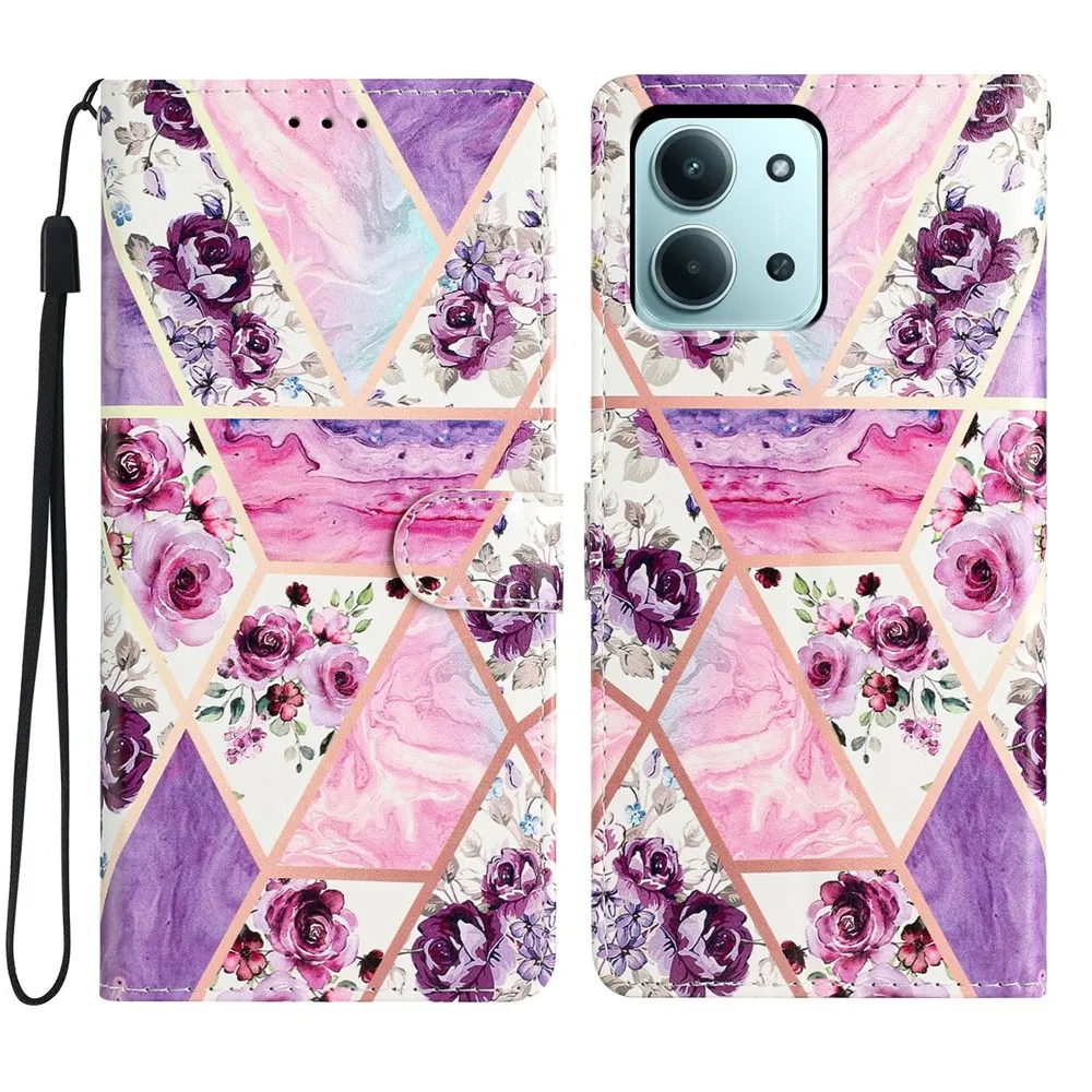 Egyedi pénztárca tok Xiaomi Redmi 15C 4G (171mm)/Poco C85 4G (171mm) és lila virágok számára