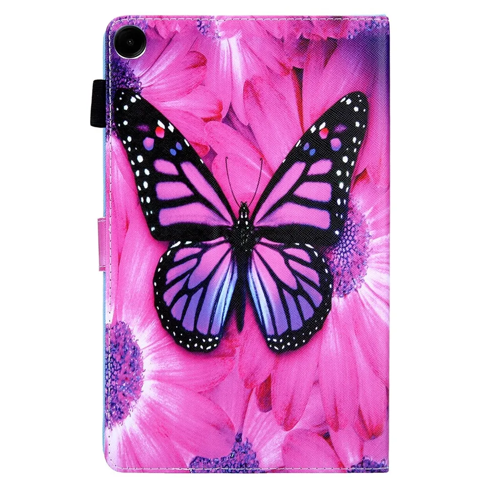 Stílusos, intelligens záró tok Samsung Galaxy Tab A11+/Tab A9+ tablethez, rózsaszín pillangó és gerbera motívummal