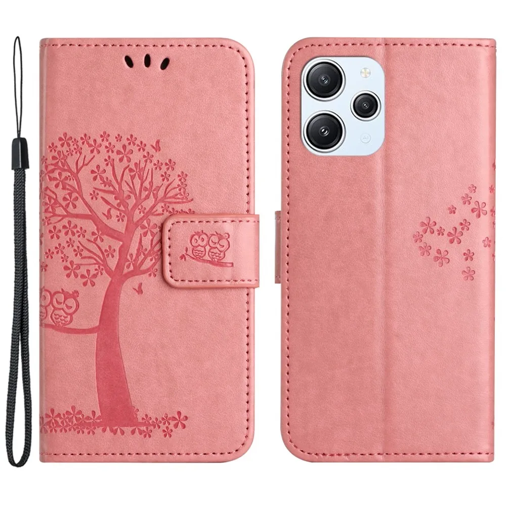 Rózsaszín pénztárca tok fa Xiaomi Redmi 12 4G/5G számára