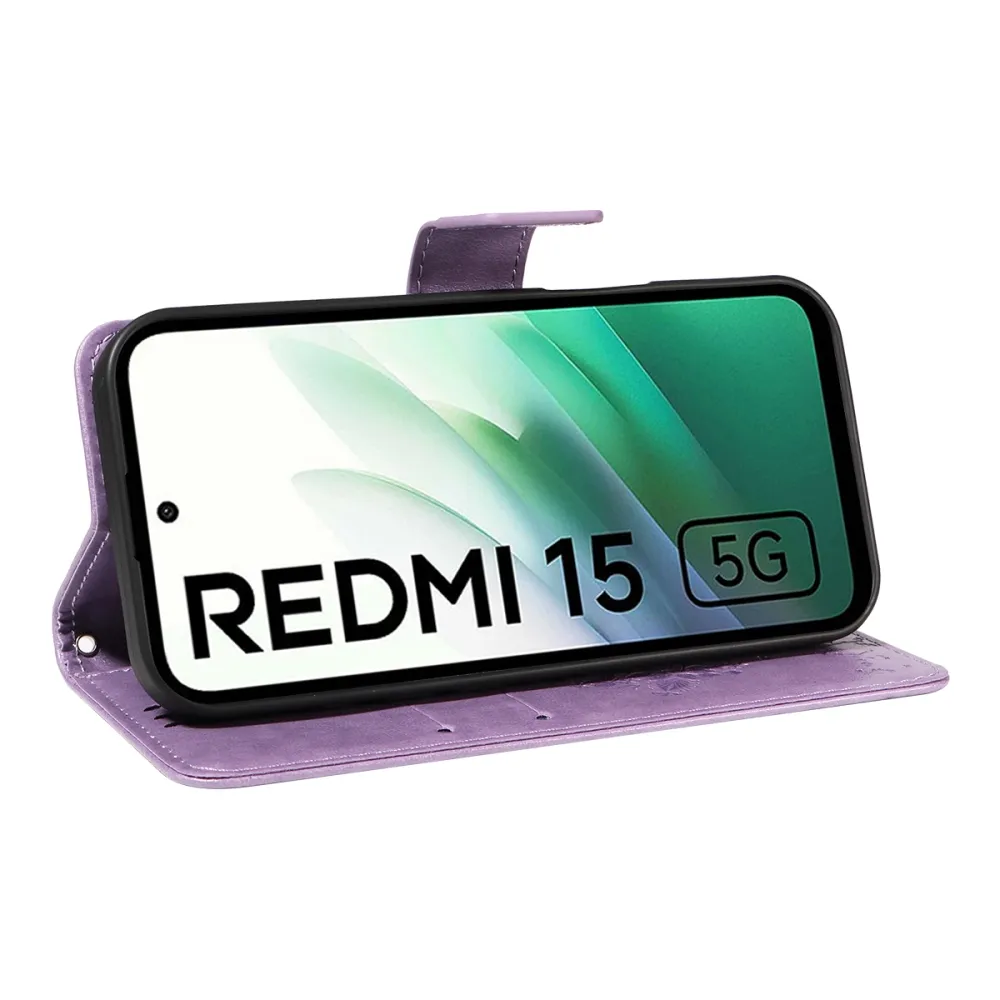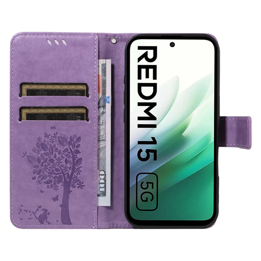 Világos lila pénztárca tok Trees for Xiaomi Redmi 15 4G (171mm)