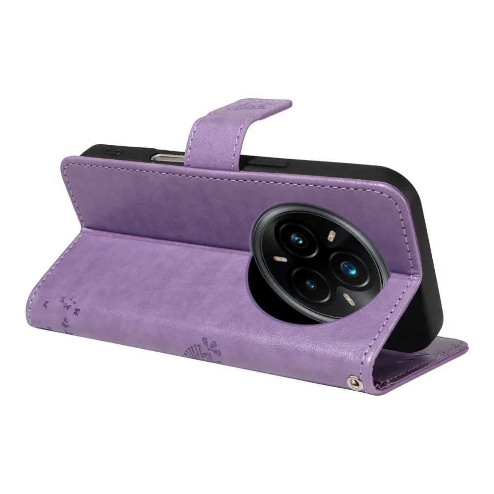 Világos lila Trees pénztárca tok a Realme 14 Pro+ 5G számára