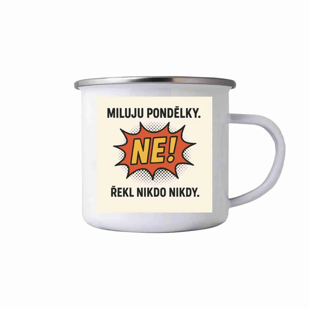 Kiváló kivitel A fém bögre kiemelkedik könnyű kialakításával, ellenállóságával és időtlen retro megjelenésével, amely otthonra és utazáshoz is ideális. A zománcozott felület sima, kellemes tapintású, és megvédi a bögrét a mindennapi használat során előforduló sérülésektől. A fém test biztosítja a tartósságot és hosszú élettartamot. A precíz nyomtatás élénk színeket és éles részleteket ad a motívumnak, amelyek sok mosás után is megőrzik megjelenésüket. Az összhatás elegáns, praktikus, és minden kortynál örömöt okoz. Műszaki adatok Űrtartalom: 380 ml Anyag: fém, zománcozott Szín: fehér Tömeg: 170 g Méretek: magasság 80 mm, átmérő 87 mm Remek ajándékötlet Az eredeti fémbögre képregényes motívummal nagyszerű ajándék kollégáknak, barátoknak vagy bárkinek, aki humorral kezeli a hétfőket. Már az első korty kávéval feldobja a hangulatot és kellemesebbé teszi a hét leglassabb kezdését.