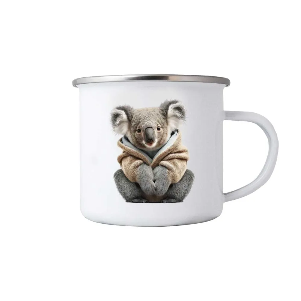 Ez a bögre már első pillantásra is kellemes, meghitt hangulatot áraszt a puha pulcsiba burkolózó koala illusztrációjának köszönhetően. A finom színek és a barátságos arckifejezés otthonos, nyugodt motívumot alkotnak, amely tökéletes társ a pihenős, meghitt pillanatokhoz.