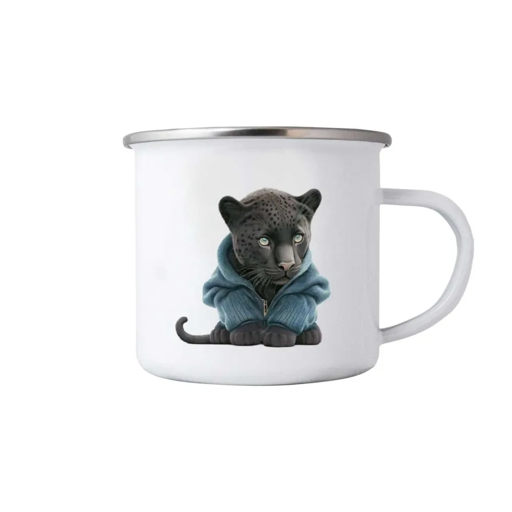 Ez a bögre különleges hangulatot teremt azzal, ahogyan a vad elegancia találkozik a játékos, barátságos megjelenéssel. A pulcsiba bújt fekete párduc illusztrációja modern és egyedi motívumot alkot, amely egyszerre hat erőteljesnek és kedvesnek. A finom részletek és az állat nyugodt tekintete kellemesen otthonos, kissé titokzatos atmoszférát adnak a bögrének.