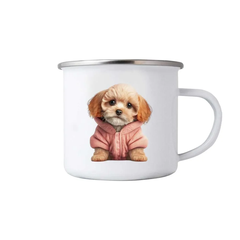 A rózsaszín pulcsit viselő kiskutya kedves és meleg hangulatot ad ennek a bögrének. A részletgazdag illusztráció barátságos és nyugodt benyomást kelt mintha a kiskutya türelmesen várná a simogatást. A puha szőr és a kötött pulóver finom kidolgozása otthonos hangulatot teremt amely még kellemesebbé teszi a kedvenc ital elfogyasztását.
