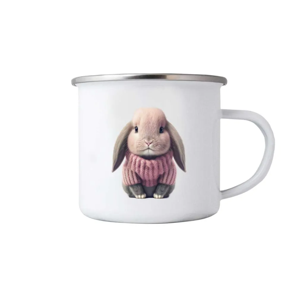 A bájos nyuszi rózsaszín pulóverben azonnal barátságos és kedves hangulatot ad a bögrének. A finom színek és a gyengéd arckifejezés kellemes összhatást teremtenek így ez a motívum remek társ a reggeli kávéhoz vagy a délutáni teához.