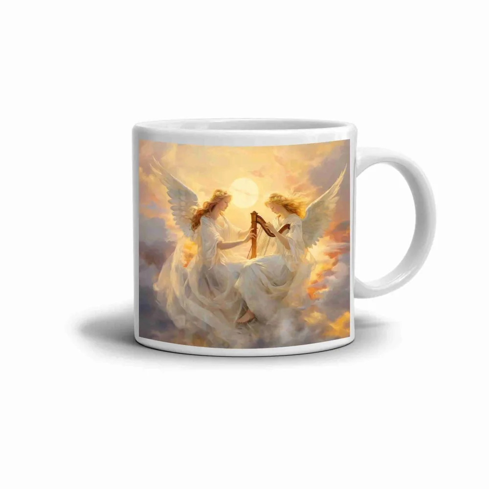 A két angyal hárfázó motívja nyugalmat, harmóniát és fényes energiát sugároz. A finom arany és barack árnyalatok a felhőkkel együtt meleget és lelki nyugalmat árasztanak, míg az angyalok szárnyai könnyedséget és eleganciát kölcsönöznek a motívumnak. Ez a motívum minden nap italainak elfogyasztásához gyengédséget és inspirációt ad. Ideális mindazoknak, akik a szépséget és a finom harmóniát keresik a mindennapjaikban.