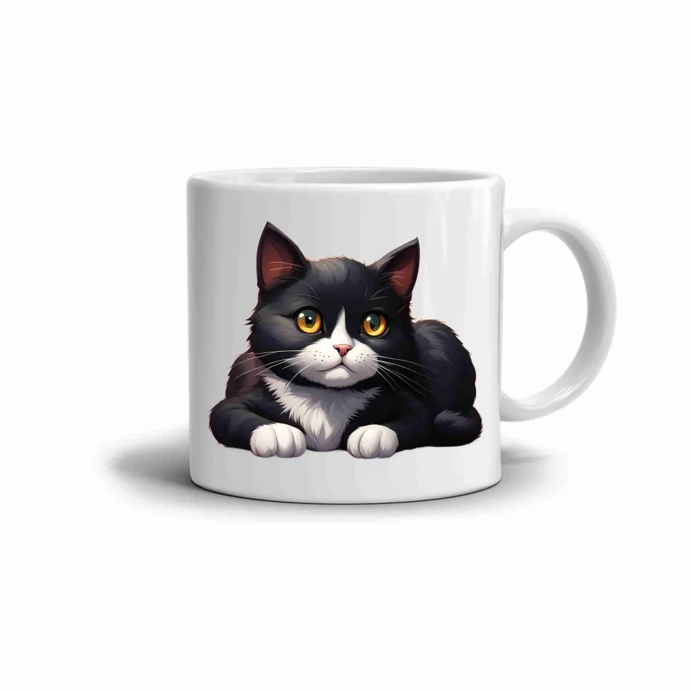 A bögrén megjelenő kedves, rajzolt macska élénk, borostyánsárga szemekkel és puha fekete bélással azonnal magára vonja a figyelmet. A motívum játékos és barátságos hangulatot teremt, ezért ez a kerámia bögre bájos kísérővé válik a pihentető teázások és kávézások során.