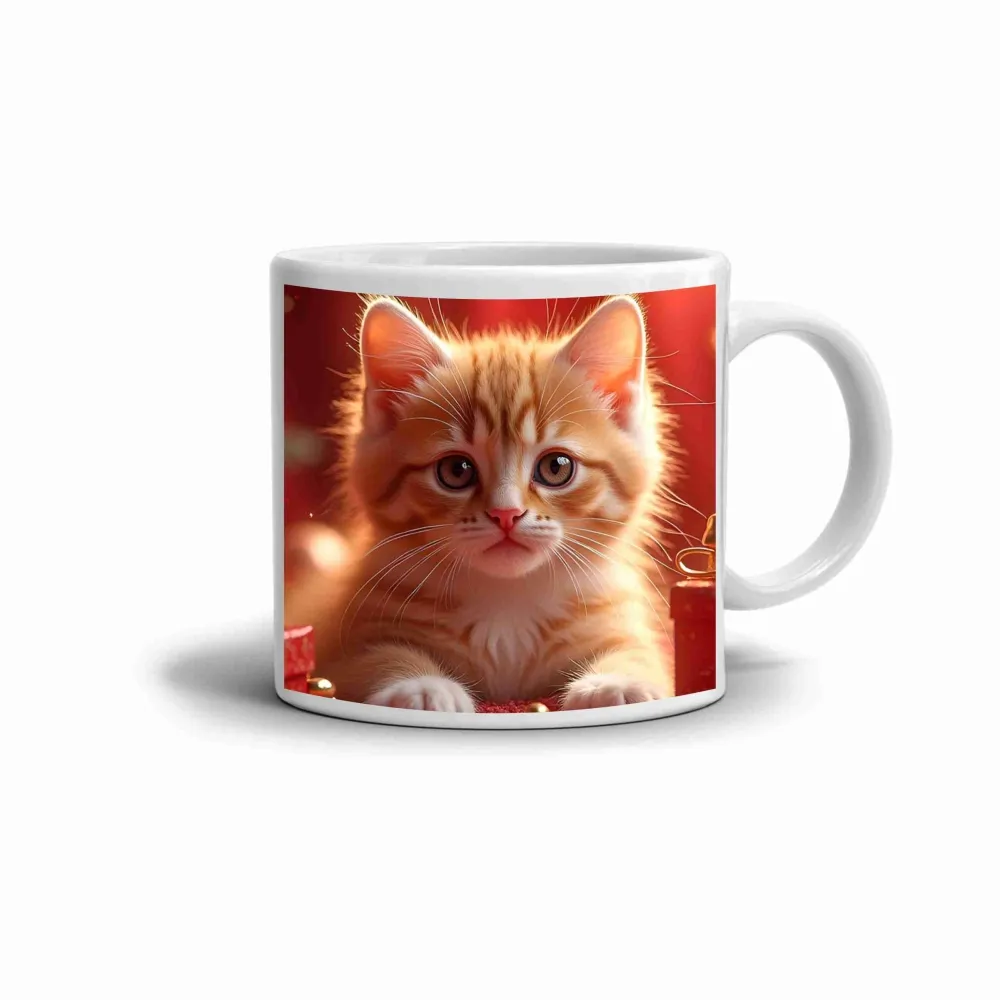 A bögre motívuma meleg hangulatot áraszt, és azonnal felkelti a macskakedvelők figyelmét a bájos vörös kiscica ábrázolásával. A részletesen kidolgozott bunda és a nagy, kíváncsi szemek játékos és kedves összhatást teremtenek, amely kellemes, vidám atmoszférát varázsol a mindennapokba.
