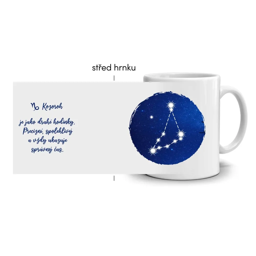 A bak motívú bögre eleganciát és átgondoltságot sugároz, akárcsak maga ez a csillagjegy. A mélykék háttér a csillagokkal nyugodt és kiegyensúlyozott hangulatot kelt, míg a csillagkép kiemeli a jegy pontosságát és megbízhatóságát. A bak szimbolikája az erőt, a türelmet és a célok elérésére való elszántságot fejezi ki, ami tökéletesen illik ehhez a znameníhez.