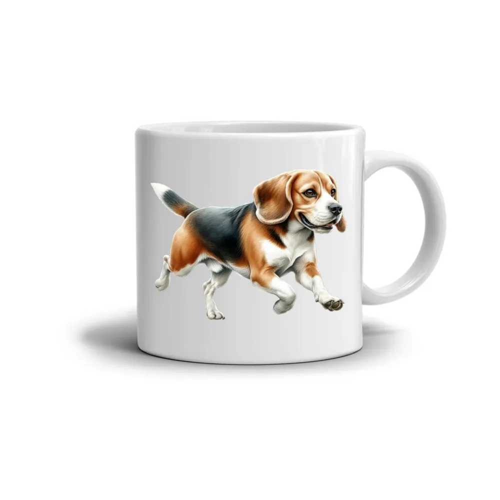 A bögre motívuma egy vidám, mozgásban lévő beaglet ábrázol, aki tele van energiával és életszeretettel. A részletes kidolgozás és az élethű kifejezés szabadságot és jókedvet sugároz. Ez a bögre kellemes hangulatot és pozitív energiát visz minden reggelbe, akár kávéval, akár teával töltik meg.
