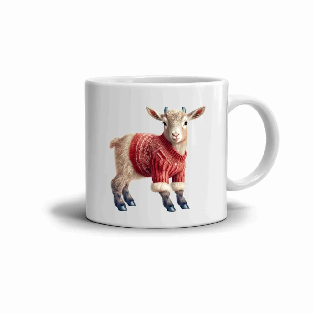 A bögre motívja egy bájos kecskét ábrázol piros pulóverben, aki játékos és barátságos hangulatot sugároz. A meleg színek és a részletesen kidolgozott szőrzet kellemes, optimista hatást keltenek. Az egész motívum vidám és otthonos, mintha minden napra egy kis pozitív energiát hozna. A bögre tökéletes választás mindazoknak, akik szeretik az állatokat és az egyedi, ötletes designt.
