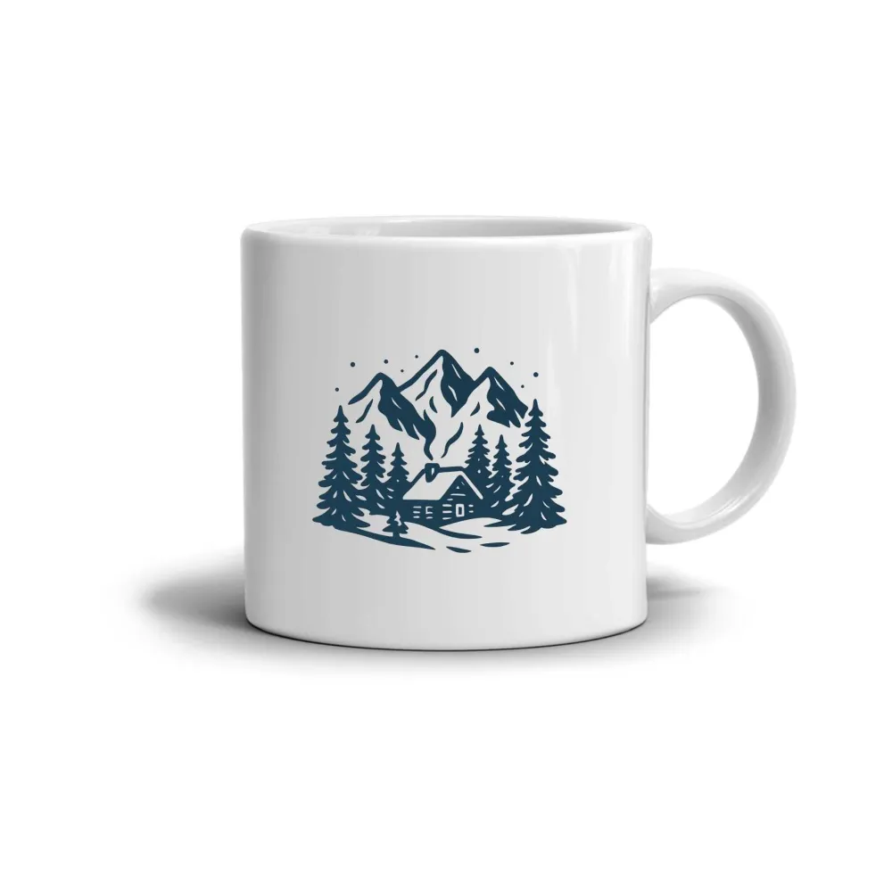 A hegyi kunyhóval, erdővel és havas csúcsokkal díszített motívum a nyugalom és a természettel való harmónia érzését kelti. Az egyszerű vonalak és a sötétkék kivitel elegáns megjelenést adnak a bögrének, és megidézik a hegyi menedék békés atmoszféráját. Minden korty ebből a bögréből emlékeztet a pihenésre és a természet csendjére.