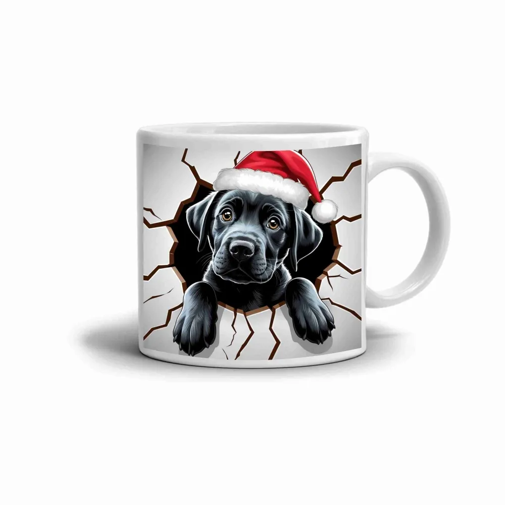 A fal repedéséből kikandikáló aranyos fekete kutyus már reggel mosolyt csal az arcra. A fején lévő piros karácsonyi sapka melegséget és ünnepi hangulatot ad a mintának. A bögre motívuma a kutyák báját és a karácsony varázsát egyesíti, így minden napra egy kis örömöt és vidámságot hoz.