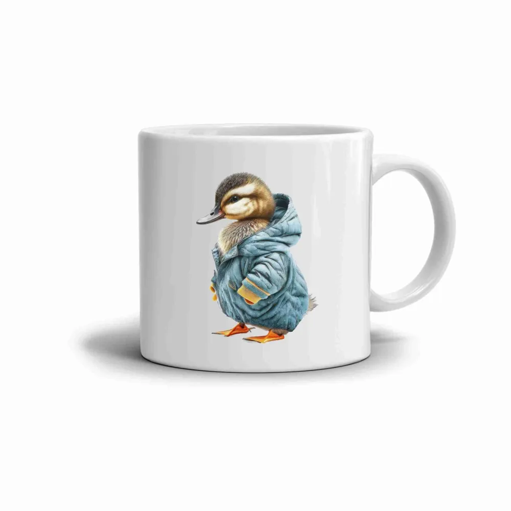 A bögrén egy téli kabátot viselő kiskacsa jelenik meg, amely kedves, nyugodt és finoman játékos hangulatot sugároz. A motívum egyszerű, mégis kifejező, így természetesen illeszkedik a mindennapi használathoz. Az illusztráció barátságos légkört teremt, amely kellemesebbé teszi a meleg italok melletti pillanatokat.