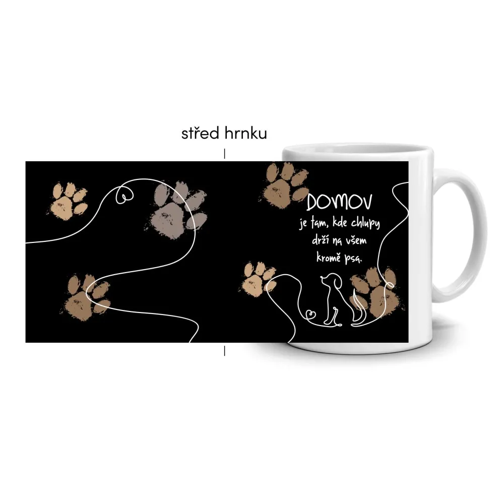 A fekete háttér elegáns megjelenést ad a bögrének, amely kiemeli a barna mancsnyomokat és a finom vonalrajzú kutya motívumot. A minta otthonos és egyben játékos hangulatot áraszt, emlékeztetve a kutyás élet örömeire és apró rendetlenségeire. Az összhatás kiegyensúlyozott, meleg, és az otthon szeretetét idézi.