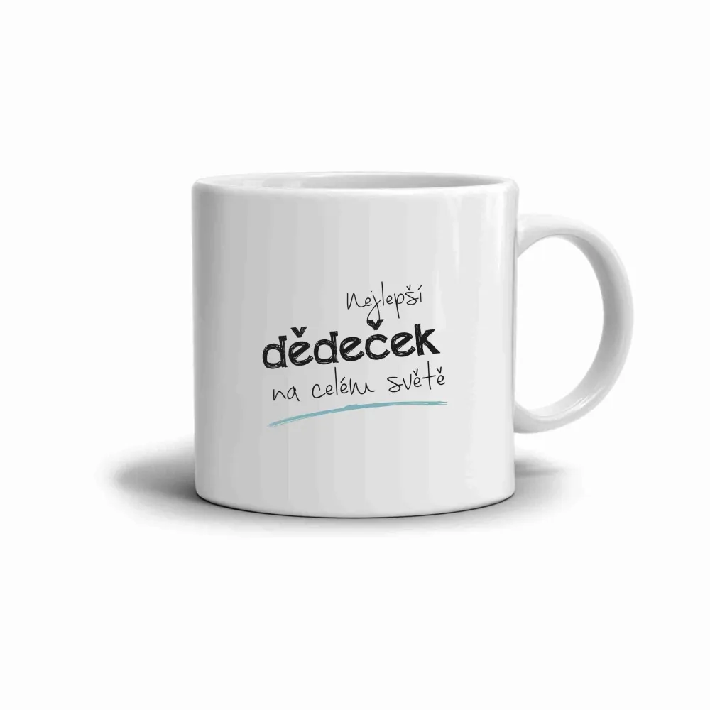 A bögre motívuma egyszerű, mégis ízléses. A fekete betűk és a finom türkiz vonal kellemes kontrasztot alkotnak, ami modern és barátságos hangulatot sugároz. Az összhatás elegáns és pozitív, tökéletesen kifejezi a szeretett nagypapa egyéniségét.