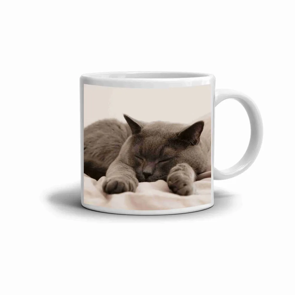 A pihentető nyugalom hangulatát hozza ez a bögrét díszítő motívum, amely egy békésen alvó macskát ábrázol puha tónusokkal és meghitt részletekkel. A finom árnyalatok és a nyugodt póz kellemes, otthonos érzést keltenek minden egyes kortynál.