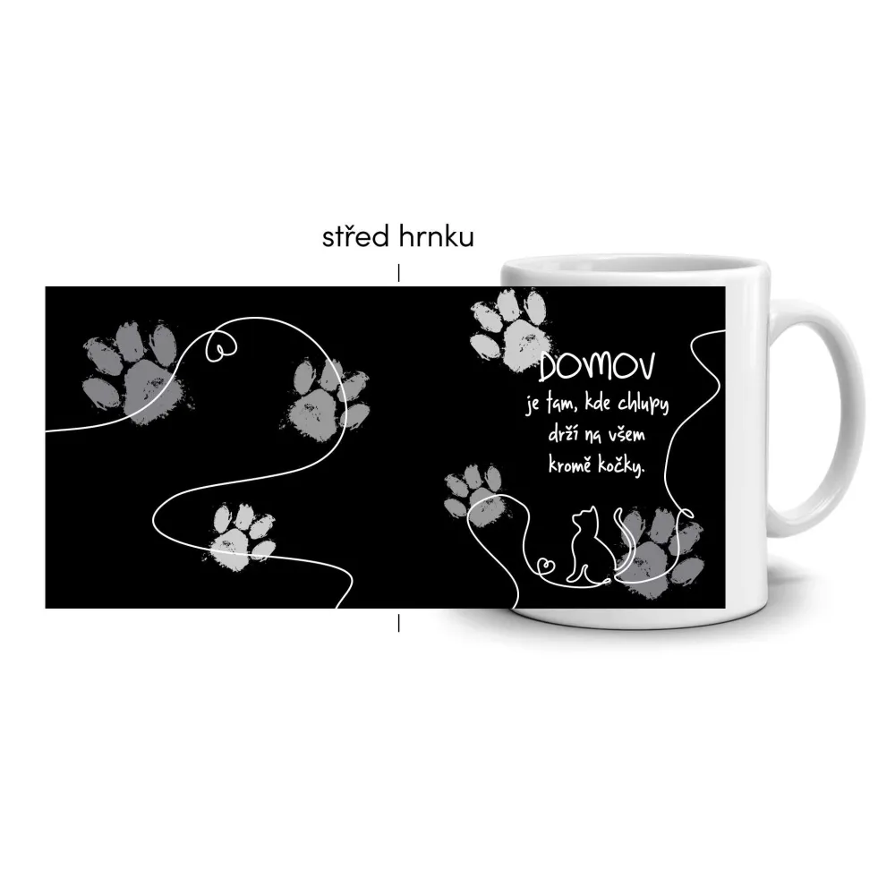 A fekete háttér elegáns és modern megjelenést kölcsönöz a bögrének, míg a szürke mancsnyomok és a finom vonalrajzú macska harmonikus és ízléses mintát alkotnak. A dizájn az egyszerűséget és a játékosságot ötvözi, megmutatva a macskák különleges természetét és kivételes helyét minden otthonban. Az összhatás stílusos, otthonos és finoman humoros.