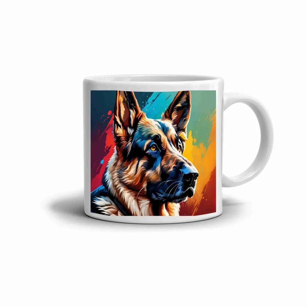 A német juhászt ábrázoló motívum lenyűgöző színvilágával és élethű kidolgozásával emeli ki e fajta erejét, hűségét és intelligenciáját. A művészi megjelenítés színes háttérrel modern és energikus hatást kelt, így a bögre feldobja a mindennapokat. Tökéletes választás a kutyákat és az erős személyiségeket kedvelők számára.